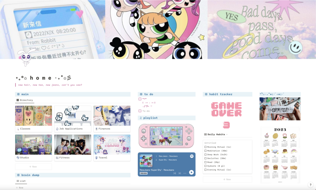A NewJeans themed all-in-one notion productivity template