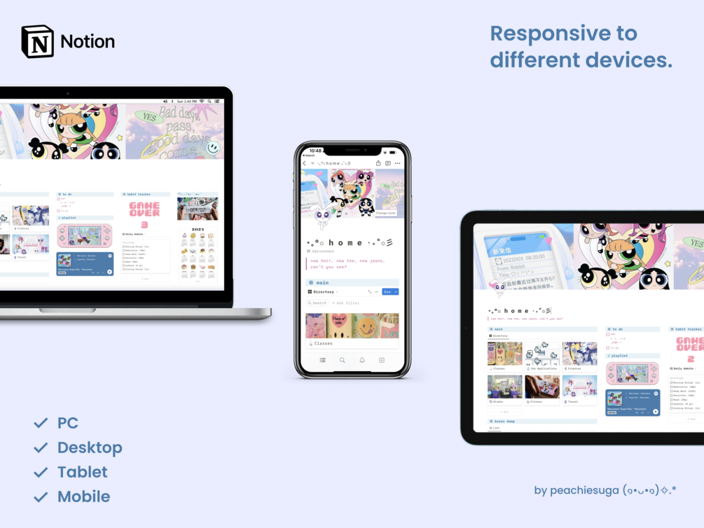 - A preferred device to access your notion template (e.g. Computer, Laptops, Phones, and Tablets)