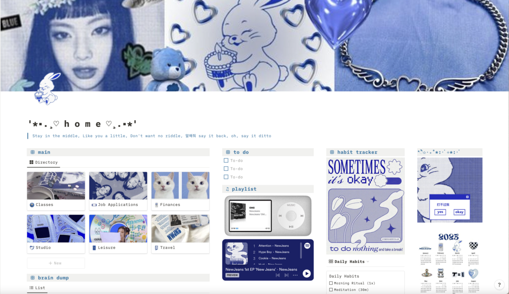Aesthetic productivity template designed on Notion, inspired by NewJeans' 1st EP.
