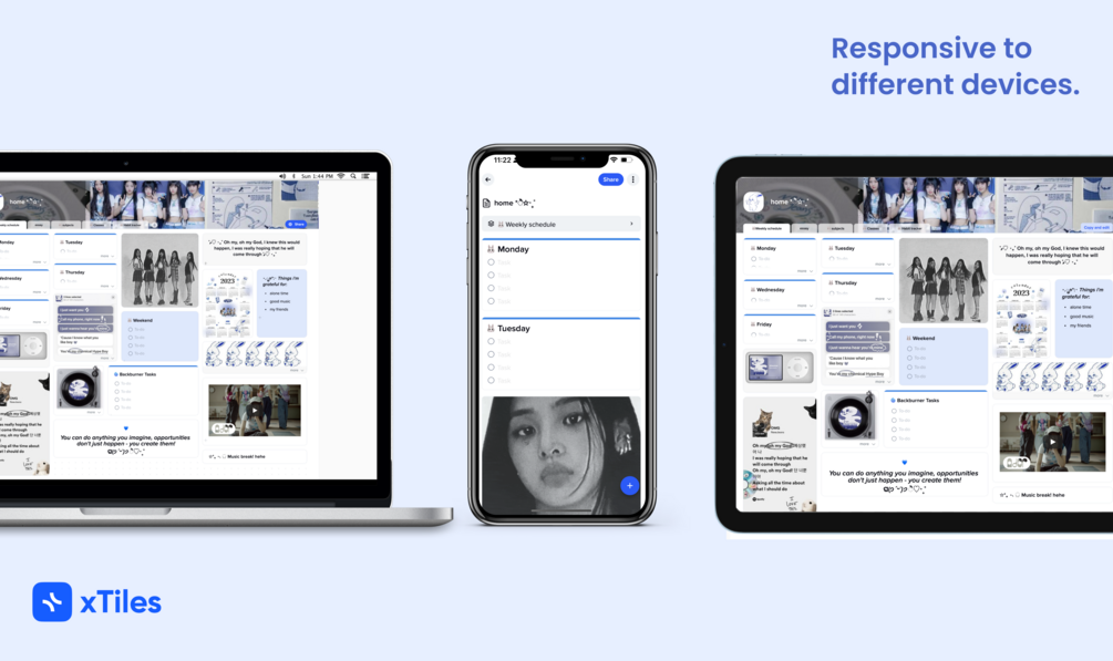 Aesthetic productivity template designed on xTiles, inspired by NewJeans 1st EP.